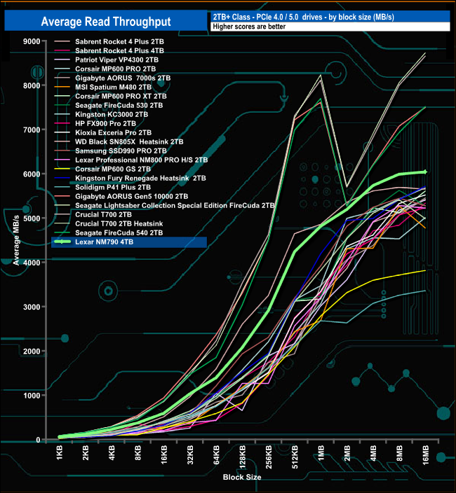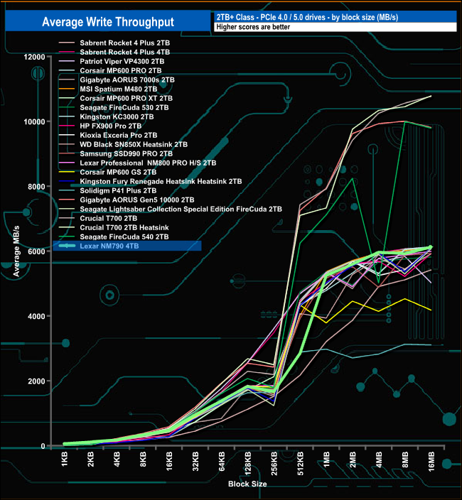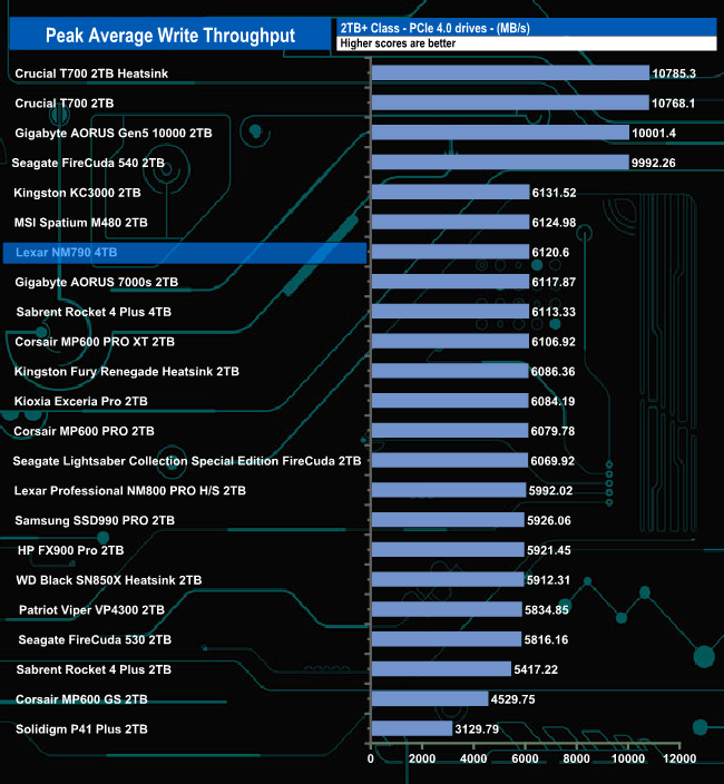 Even though the peak test result figure of 6,040MB/s is well short of the official maximum for the drive, that peak result is good enough to make the NM790 the fastest Gen4 drive we've tested to date.