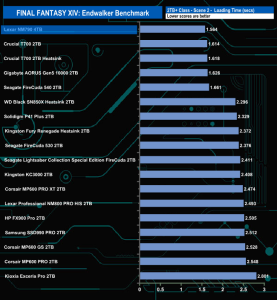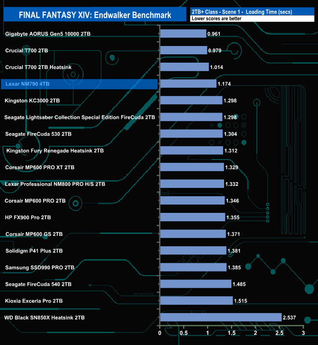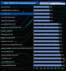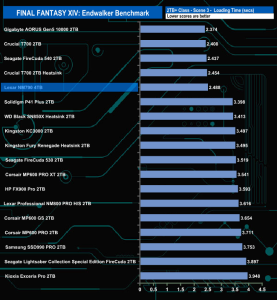 Lexar's NM790 does well enough in the Final Fantasy XIV Endwalker Official Benchmark. It only tops one of the results charts (Scene 2) but it doesn't stray outside of the top 5 of the remaining Scene traces.