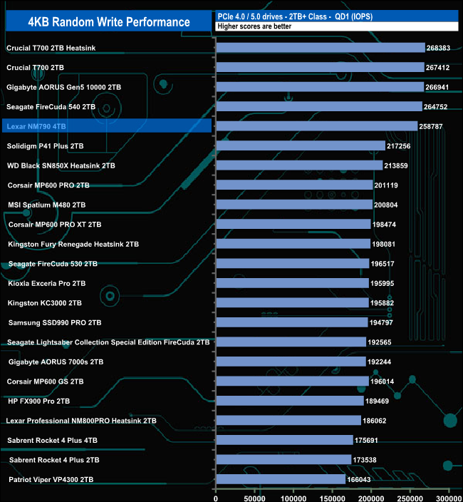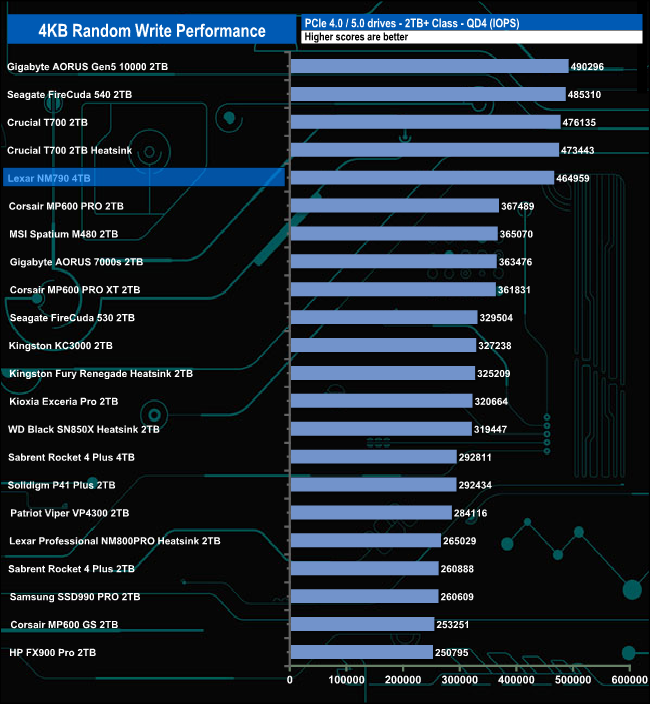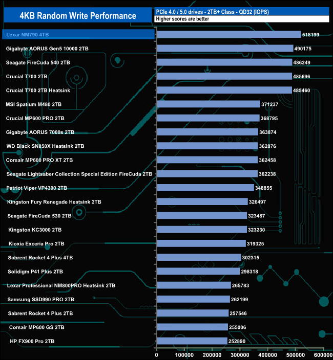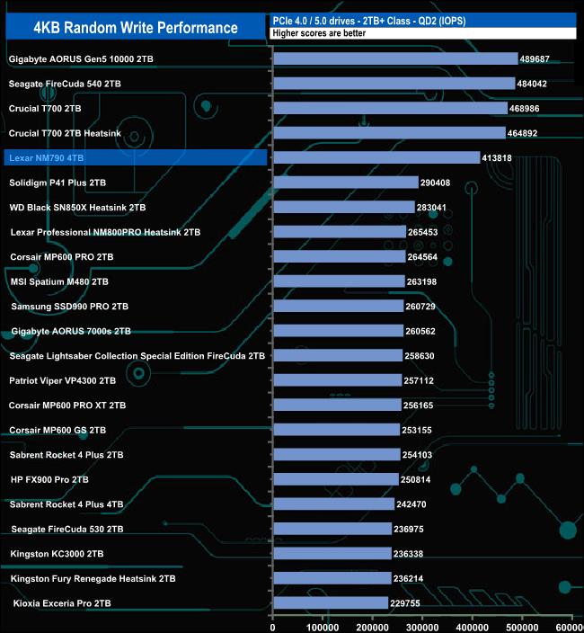 Despite not being able to match the official maximum figure, the test results for the NM790 make it the fastest consumer Gen4 drive we've seen to date for random write performance.