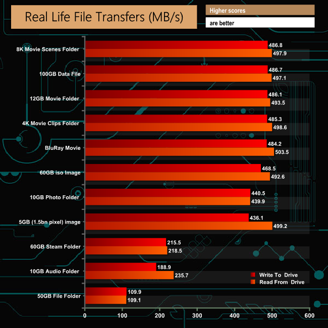 To test real life performance of a drive we use a mix of folder/file types and by using the FastCopy utility (which gives a time as well as MB/s result) we record the performance of drive reading from & writing to a 256GB Samsung SSD850 PRO.