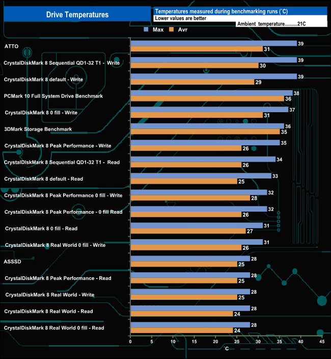 We took note of the drive’s temperature during some of our benchmarking runs. Lexar claims that the heatsink version of the Professional NM800 Pro can reduce temperatures by up to 30%. It certainly seemed to work very well. The hottest the drive got while testing was 39°C, which is comfortably well short of the official maximum operating temperature of 70°C.