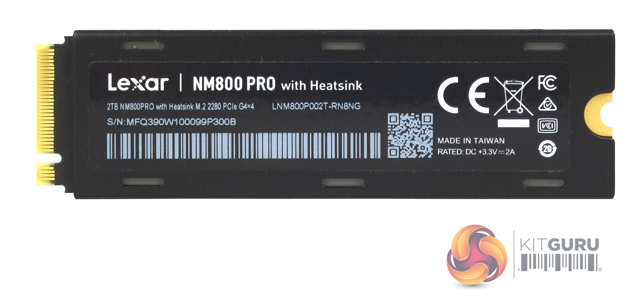 Lexar's Professional NM800 Pro Heatsink is built on a single-sided M.2 2280 format. The aluminium heatsink has been designed to fit into the storage container of PS5. Should you want to use the drive in a desktop PC, the heatsink is easily removed. The two-piece design is held together by four Philips micro-screws and Lexar has kindly used thermal pads on either side of the drive so there is no thermal gunk gluing down the drive making life a little awkward.