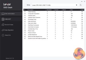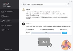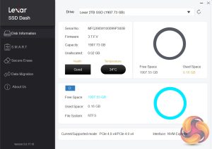 Lexar’s SSD utility goes under the name of SSD Dash. It’s not as fully featured or flashy as some of its competitors, but it does offer all the basic information you might need to keep an eye on your drive in an easy-to-understand way. It also supports Secure Erase and data migration.