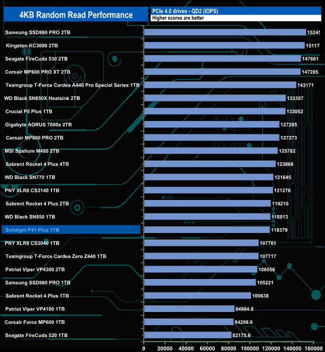 We used CrystalDiskMark 8‘s custom settings to test the 4K random read performance of the drive through a range of queue depths. The setup for the tests is listed below.