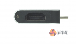 The hub plugs directly into the MacBook (Pro or Air) via the two Thunderbolt ports in the side of the chassis. On the other side of the hub , we find a USB 3.0 (Type-A) port and a Thunderbolt 3 port which supports charging. Built into one end of the hub is a full-sized HDMI port which supports 4K @60Hz.