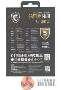 The Spatium M480 comes in a well-constructed box with a large image of the drive on the front with the capacity and Sequential read speed listed above the image and the fact that it is a PCIe 4.0 drive under it, above the drive name.