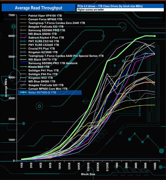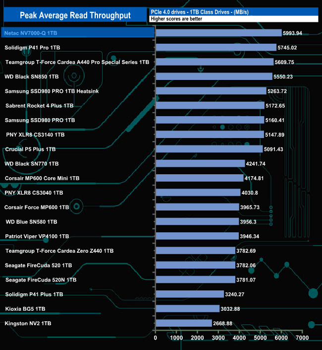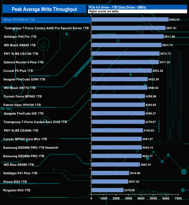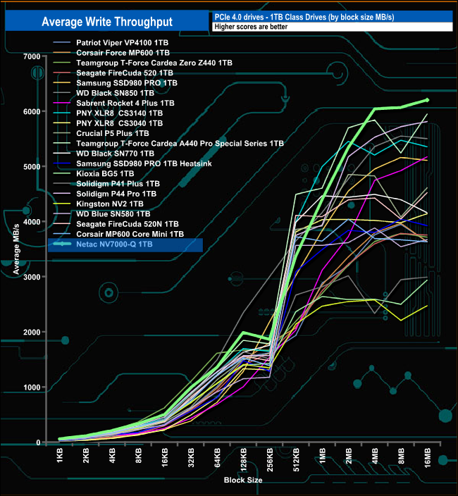 With a test result of 6,202MB/s, the Netac NV7000-Q is the fastest Gen.4 1TB drive we've seen to date in this test.