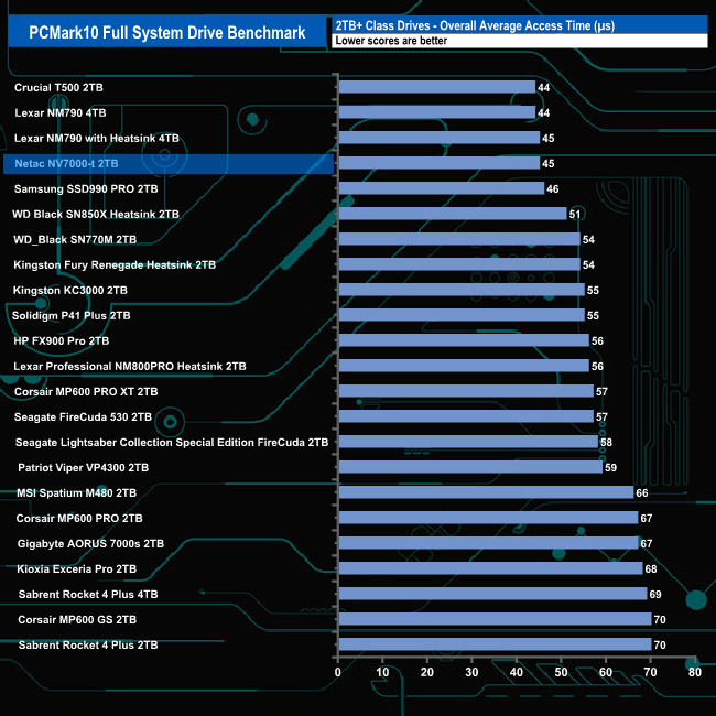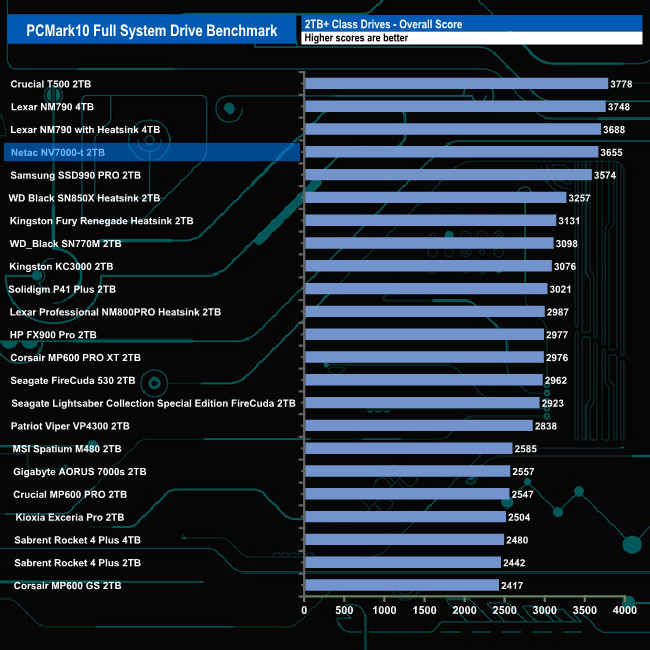 With an overall bandwidth figure of 573.53MB/s, the 2TB Netac NV7000-t slots into the fourth spot on the results chart behind the two versions of Lexar's NM790 and the T500 from Crucial.