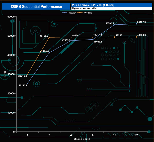 128KB Sequential Read v QD compared.