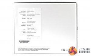 The drive comes in a sturdy box with a large image of the drive on the front. The rear of the box has a comprehensive specification panel on it.