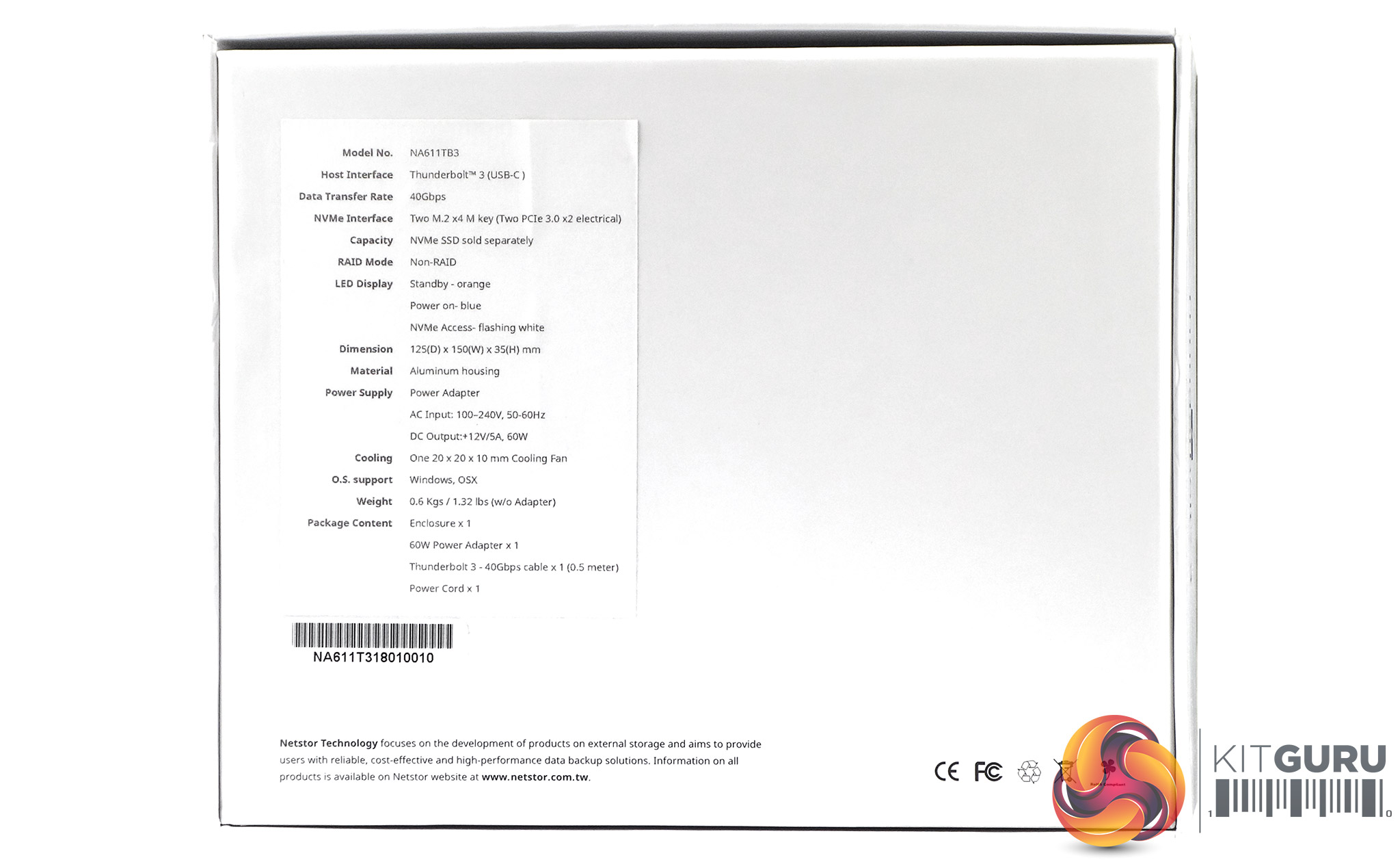 The box bundle comprises a 60W power adaptor (Seasonic SSA-0601HE-12), a 0.5m Thunderbolt 3 cable and a mains cable. It would be nice to have a slightly longer Thunderbolt cable as the one supplied is fine for notebook use, but some PC users might find the length a little restrictive.