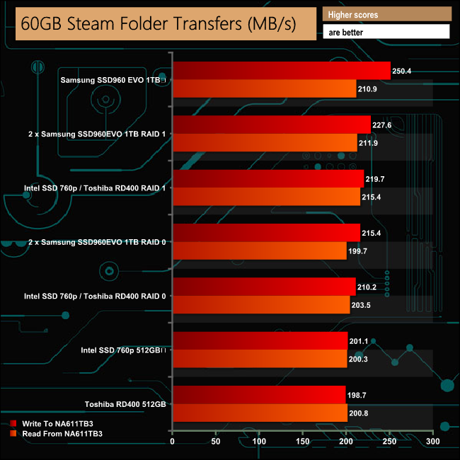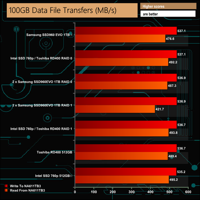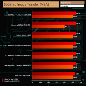 Our real life transfer tests were handled without any real problems, although the larger file sizes were dealt with much more efficiently than the smaller sized ones across all the drive options.