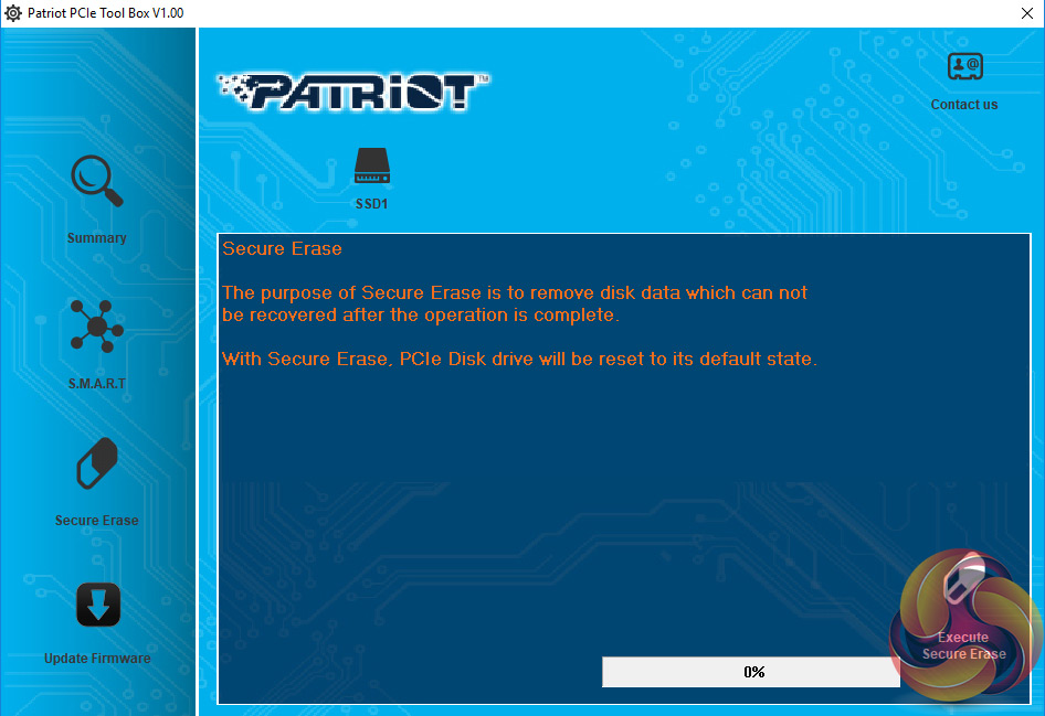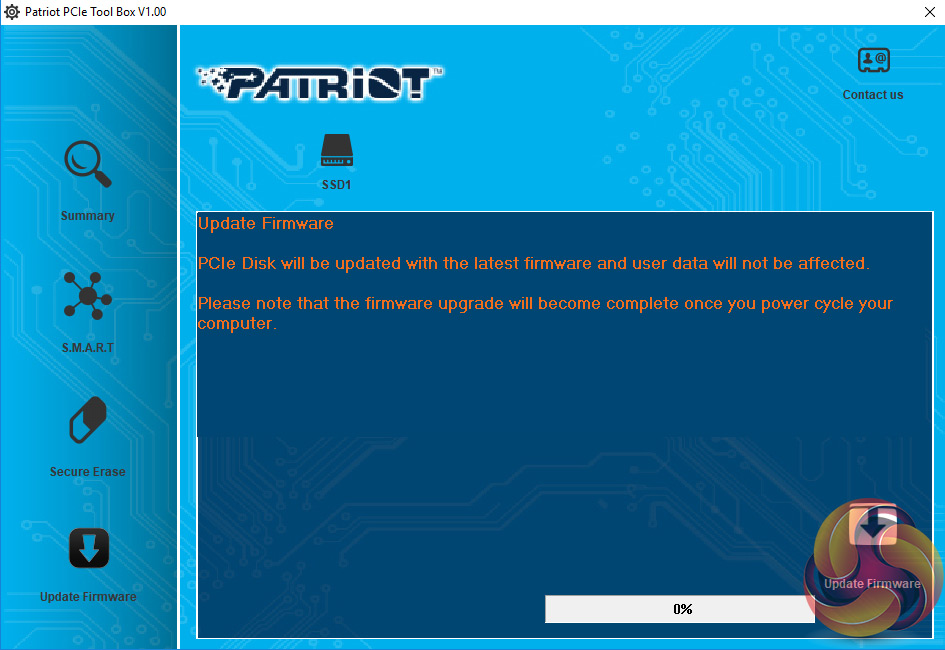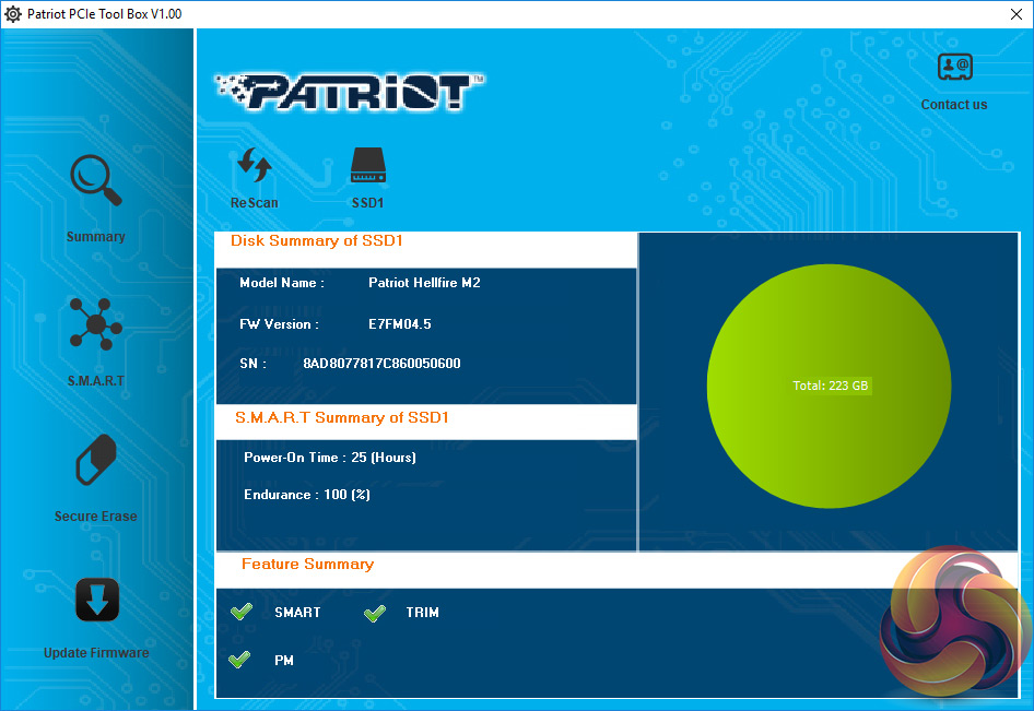 Patriot's SSD management software, the Patriot PCIe Tool Box (v1.00) looks a pretty basic utility compared to some of it competitors offerings but it really does offer all you really need to keep an eye on your drive.