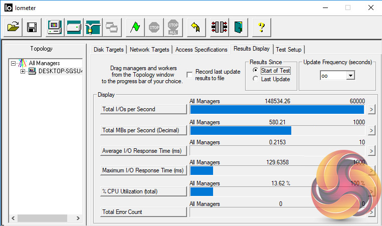 With our IOMeter test we couldn't get close to the maximum quoted figure for writes, the tested drive producing 148,534 IOPS but when it came to reads, the drive sailed past the official figure, giving a total of 200,720 IOPS.