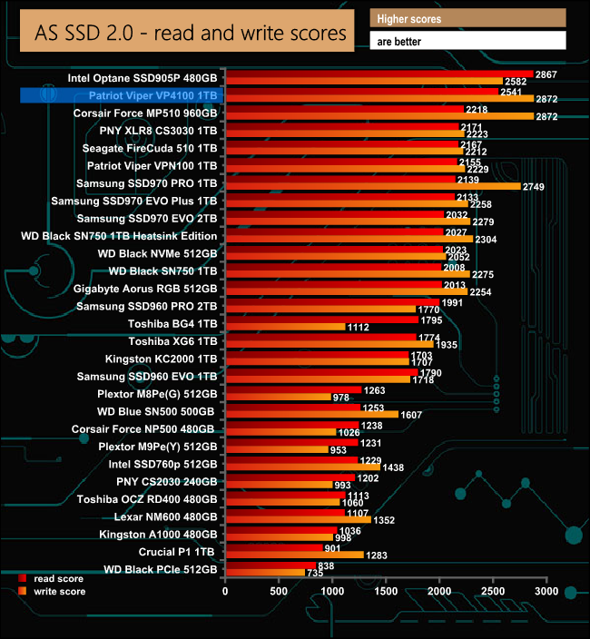 Taking Intel's Optane equipped SSD905P out of the equation, the Viper VP4100 has the fastest read (2541) /write (2872) scores of any consumer drive we've looked at.