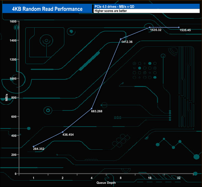 4K Random Read v QD Performance compared.