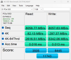 AS SSD includes a sub suite of benchmarks with various file pattern algorithms but this is difficult in trying to judge accurate performance figures.