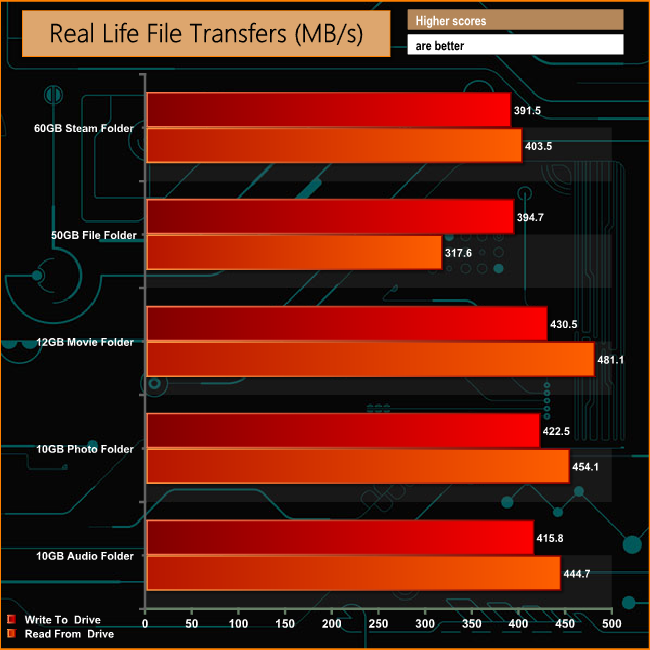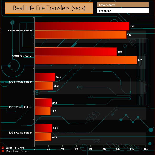 As you might expect from a PCIe SSD, transferring files to and from it poses no problems at all. As an example, it takes just under two minutes to copy the 50GB file folder to the drive and a mere 2m 45 seconds to copy it back.