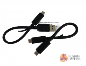 The drive sits in a plastic tray inside the box, under which you will find the two bundled cables; USB-C 3.1 to USB-C 3.1 and USB-C 3.1 to USB-A 3.1, both of which are on the short side. Also bundled in with the drive is a serial number for Acronis True Image, which can be downloaded from the PNY website.
