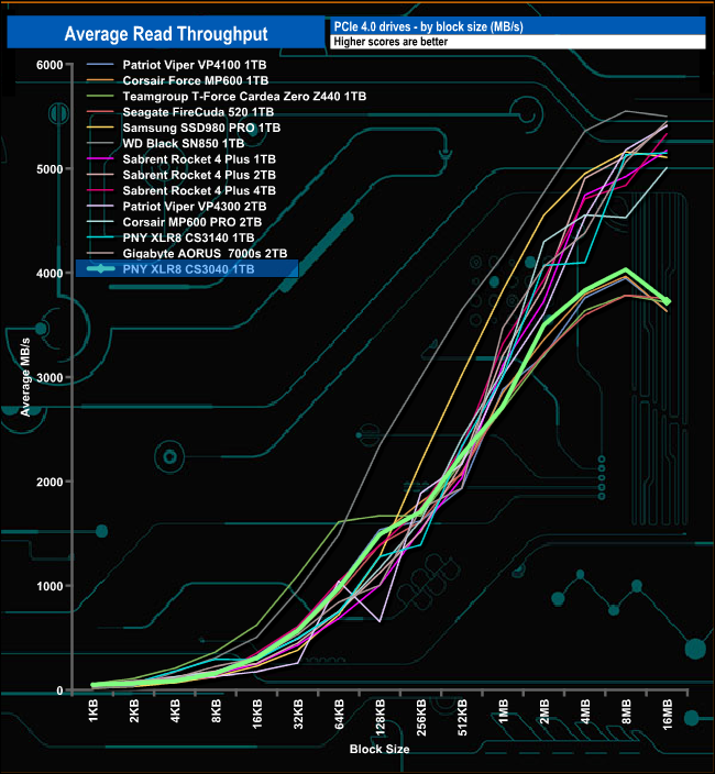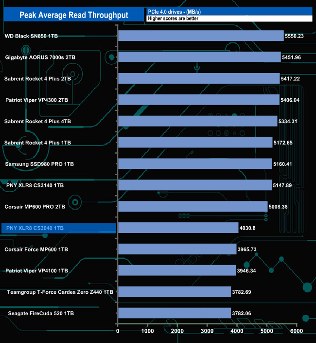 The 4,030MB/s read throughput result puts the XLR8 CS3040 into the bottom half of our result chart.