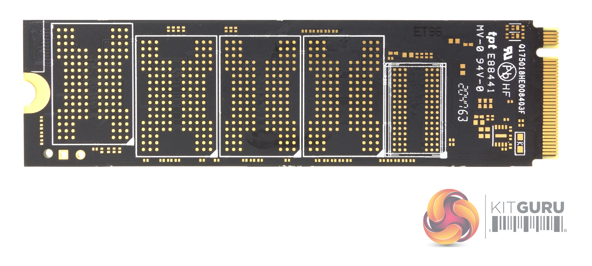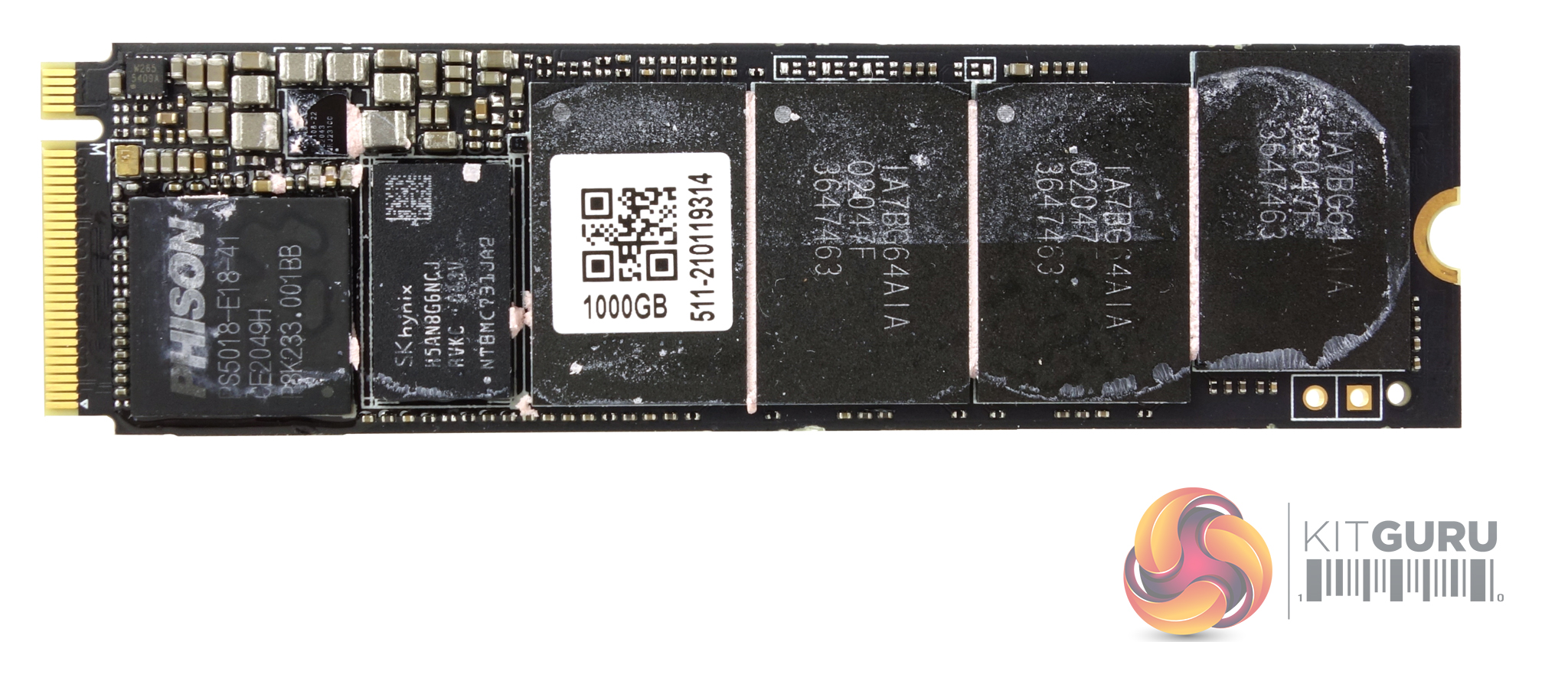 The 1TB version of the XLR8 CS3140 is built on a single-sided M.2 2280 format using a 12nm manufacturing process. Next to the PCIe connector is the Phison PS5018-E18 8-channel controller, next to which sits the 1GB DDR4-2666 SK hynix (H5AN8G6NCJR-VKC) cache chip. The rest of the PCB real estate is taken up by four 256GB packages of Micron 96-Layer 3D TLC NAND (labelled IA7BG64AIA).