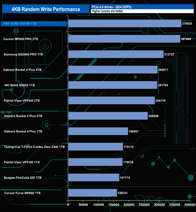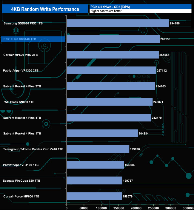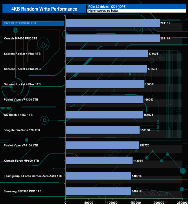 Unlike the 4K random read performance, when it comes to random writes the drive is at the top of the charts for all tested queue depths, with the exception of QD2 where Samsung's SSD 980 PRO still reigns supreme.