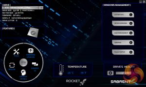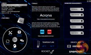 Sabrent's SSD management software goes by the name Rocket Control Panel. It has a fancy, easy to use GUI and it allows you to all the usual things like checking the drive's health and updating the firmware. It also has a link to download a copy of Acronis True Image for Sabrent.