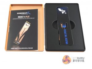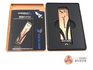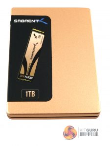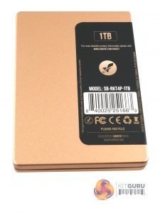 Once opened the reason for the weight becomes obvious, the drive itself comes packed in a classy copper-coloured metal box, a really nice touch that from Sabrent.
