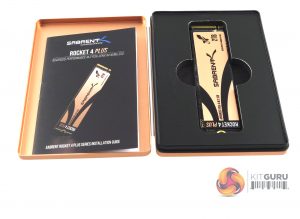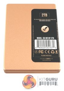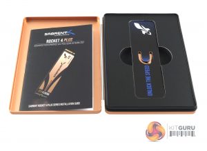 Once the box is opened the reason for the weight becomes obvious, the drive itself comes packed in a classy copper-coloured metal box, probably the best packing we have seen for a non-special edition SSD. Hats off to Sabrent for that one.