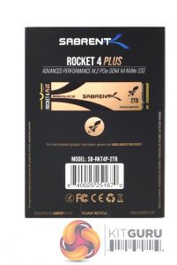 Unlike many of its competitors, the 2TB Rocket 4 Plus comes in a diminutive box, the weight of which is surprising but more on that in a minute. The front of the box has an image of the drive with the capacity displayed in the bottom right-hand corner. The rear of the box carries a different view of the drive along with the drive’s product number.