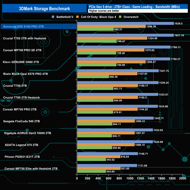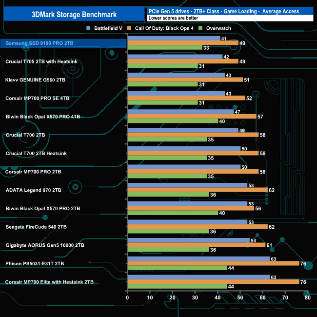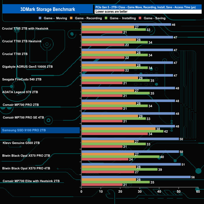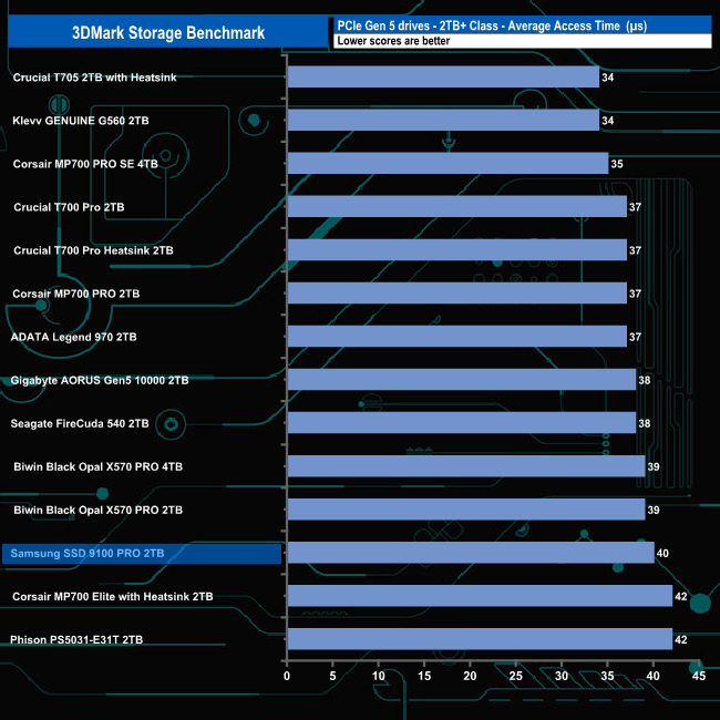 In 3DMark’s Storage Test, the drive had an average game loading bandwidth figure for the three games of 1,258MB/s, the fastest we've seen to date in this part of the test with an average access time figure of 41µs (0.041m/s).