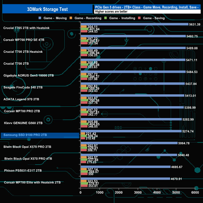 In the game moving, recording, installing and saving test traces, the drive averaged 1,505.47MB/s with an average access time of 40µs (0.040m/s) for the four tests, which sees the drive in the lower half of the table.