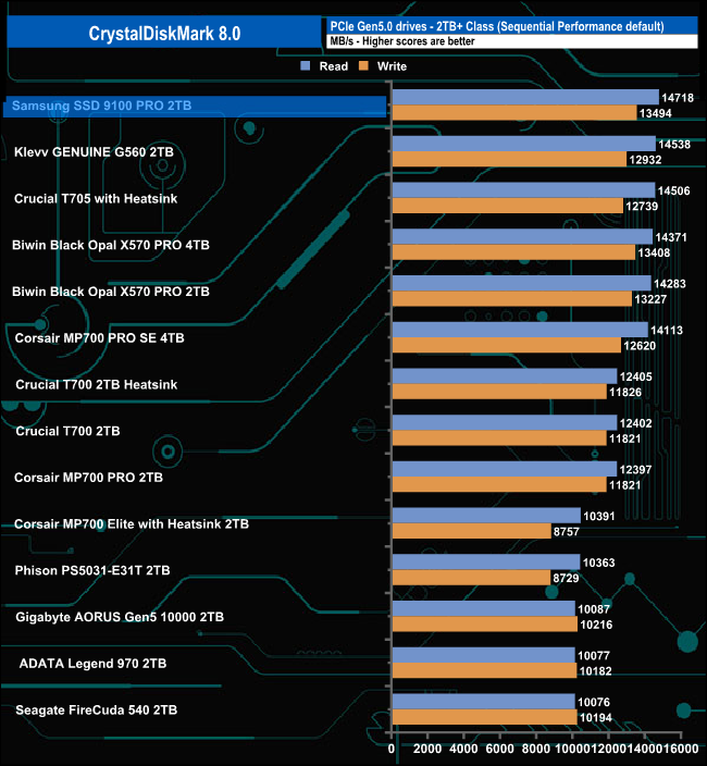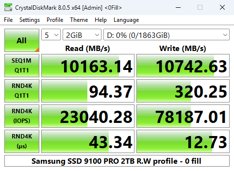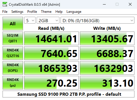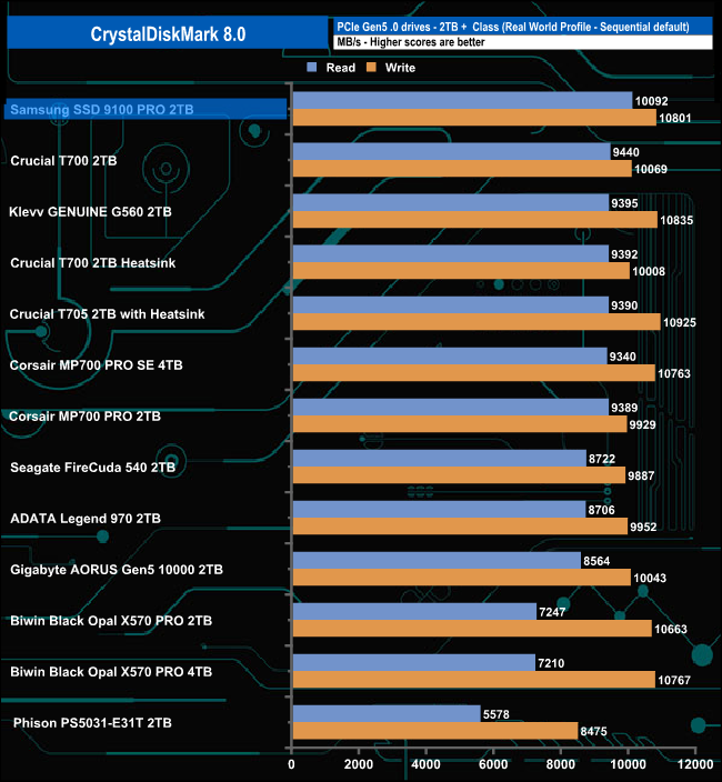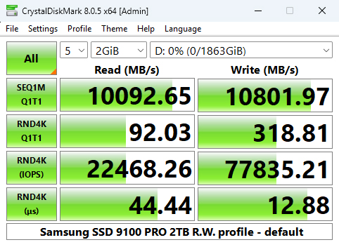 Both of the Sequential test results for the SSD 9100 Pro are the fastest we've seen to date for a consumer Gen5 SSD.