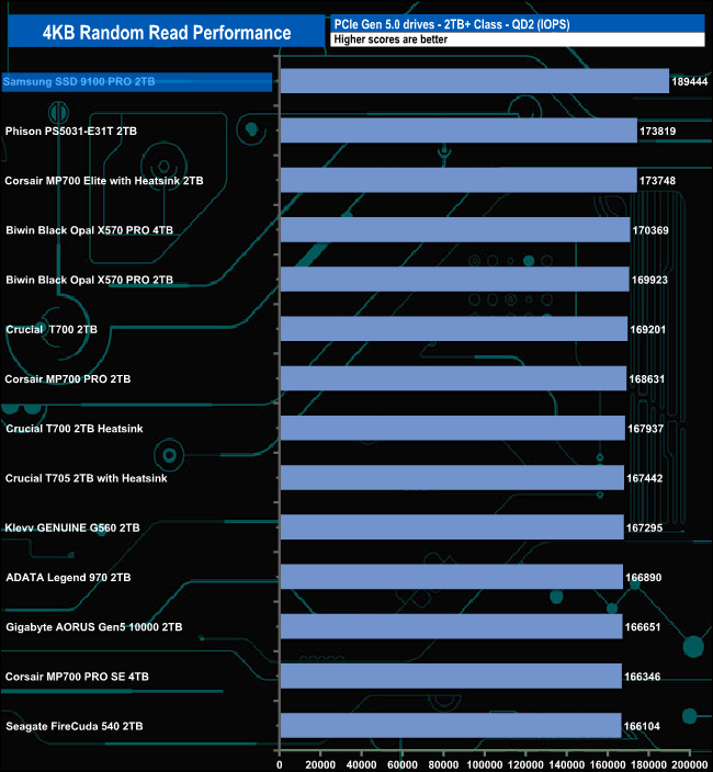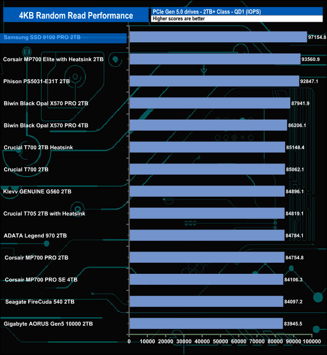 We used CrystalDiskMark 8‘s custom settings to test the 4K random read performance of the drive through a range of queue depths. The setup for the tests is listed below.