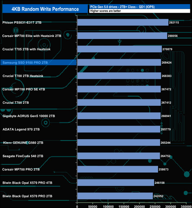 We used CrystalDiskMark 8‘s custom settings to test the 4K random write performance of the drive through a range of queue depths. The setup for the tests is listed below.