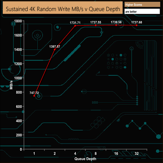 Even though we couldn't match the maximum official 4K random write figure, the drive is still the fastest consumer drive we have seen to date in terms of random write performance.