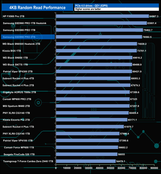 We used CrystalDiskMark 8‘s custom settings to test the 4K random read performance of the drive through a range of queue depths. The setup for the tests is listed below.