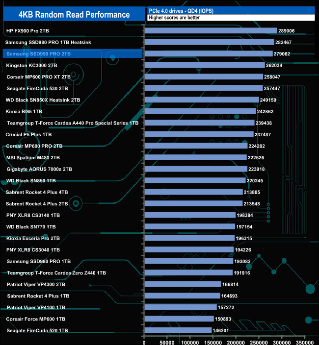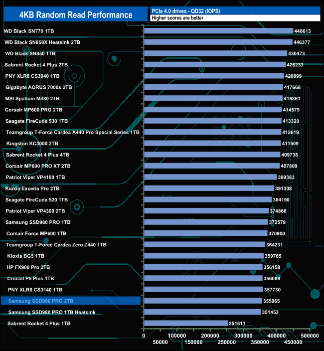 Using our 4-threaded random read 4K tests we couldn't get close to the official maximum at QD32 of 1,550,000 IOPS. The best figure we saw was 356,356 IOPS at QD16.