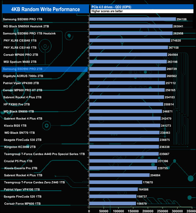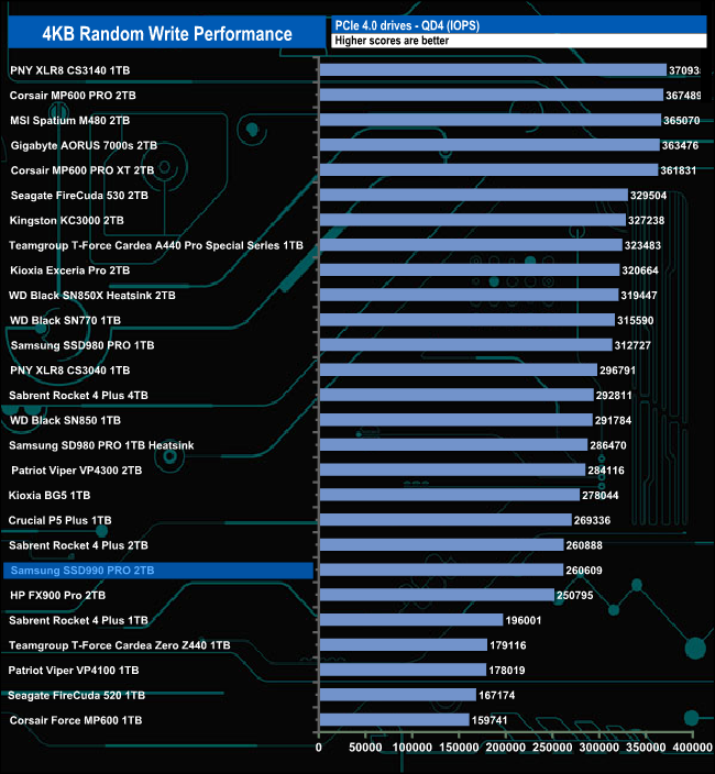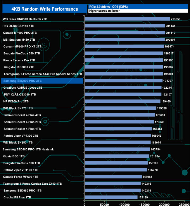 At shallower queue depths the drive sits in the top ten in our results chart but as the queue depth deepens the drive drops down the chart, eventually ending up in the bottom ten with the QD32 result of 262,199 IOPS.
