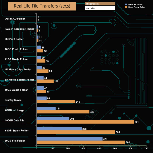 To test real-life performance of a drive we use a mix of folder/file types and by using the FastCopy utility (which gives a time as well as MB/s result) we record the performance of drive reading from & writing to a 256GB Samsung SSD850 PRO.