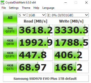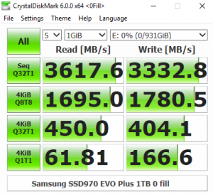 CrystalDiskMark is a useful benchmark to measure theoretical performance levels of hard drives and SSD’s. We are using v6.0. to test NVMe drives.