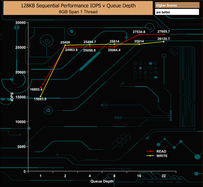 It's a similar story when it comes to Sequential writes. At a QD of 1, the new drive isn't as quick as the old drive but as the queue depth deepens, the new drive quickly pulls away. In fact, it tops the charts in queue depths 2, 4 and 32.