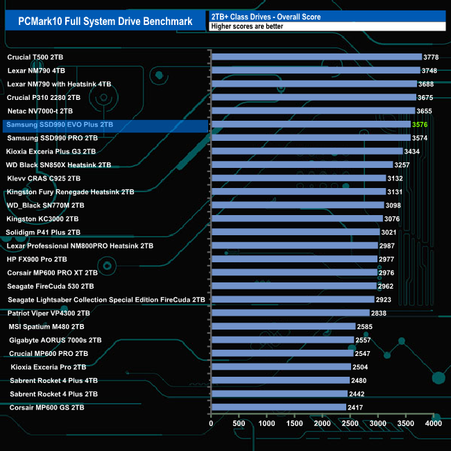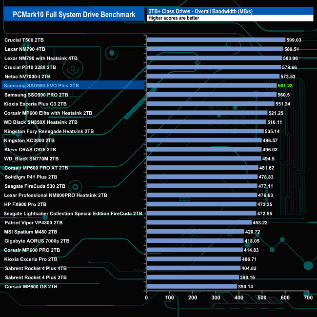 The SSD990 EVO Plus slips into sixth place in the overall bandwidth chart, just a head of the SSD990 PRO.