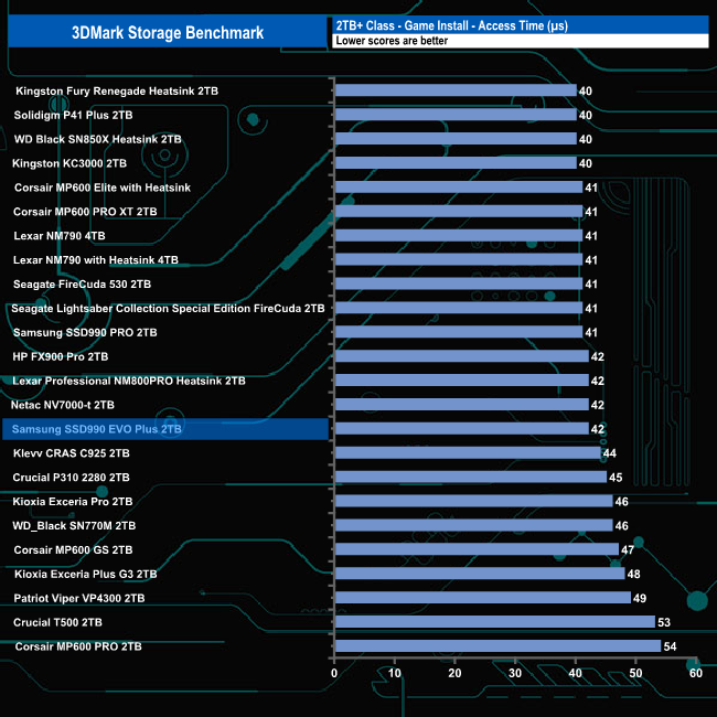 The Game Installation test is one of the few in the 3DMark Storage test where the Samsung SSD990 EVO Plus is beaten by the older Samsung SSD990 PRO.