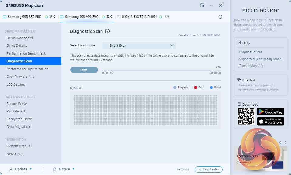 Samsung’s SSD management utility goes by the name of Magician and can be downloaded from Samsung’s website. Samsung continually updates Magician and the latest version (at the time of writing) is v8.2, Magician is a pretty comprehensive utility that allows you to do most of the maintenance jobs you may need to do with an SSD and lists them under two headings; Drive Management and Data Management.