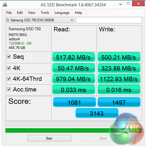 With RAPID mode turned on the Sequential read score in ATTO rockets up from the 551MB/s up to a 3758MB/s. The rise in the write score isn't quite so dramatic, rising from 527MB/s to 2818MB/s.