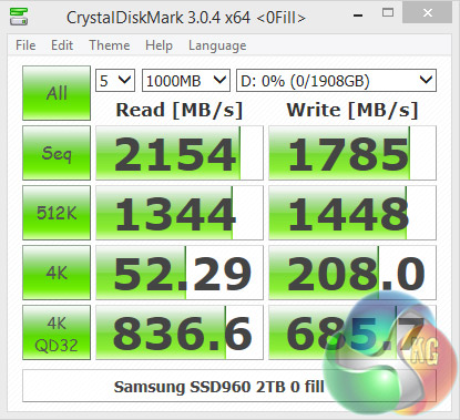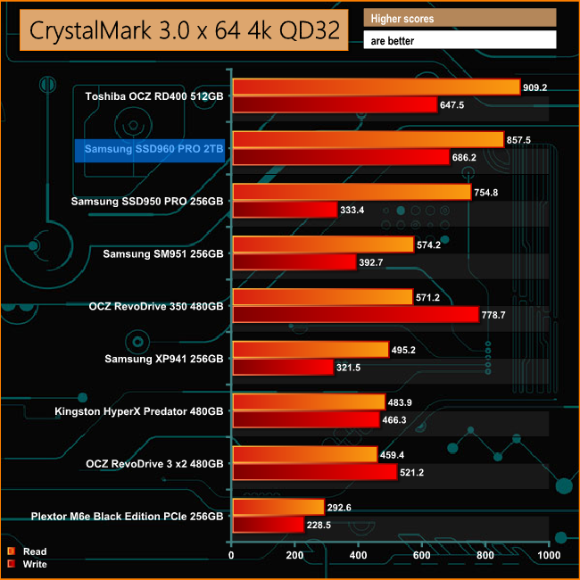 The SSD960 PRO may be a little slower than Toshiba's RD400 when it comes to 4K QD32 reads but it offers better write performance.