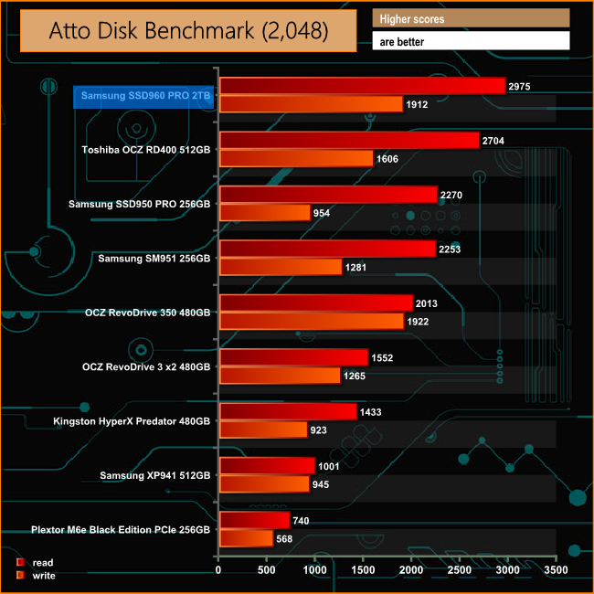 When it comes to Sequential read/write performance, the SSD960 PRO is the new king of the hill by quite some margin in both reads and writes.