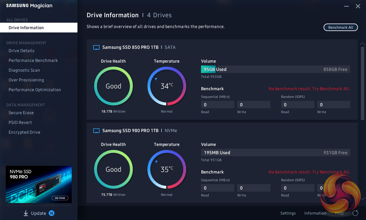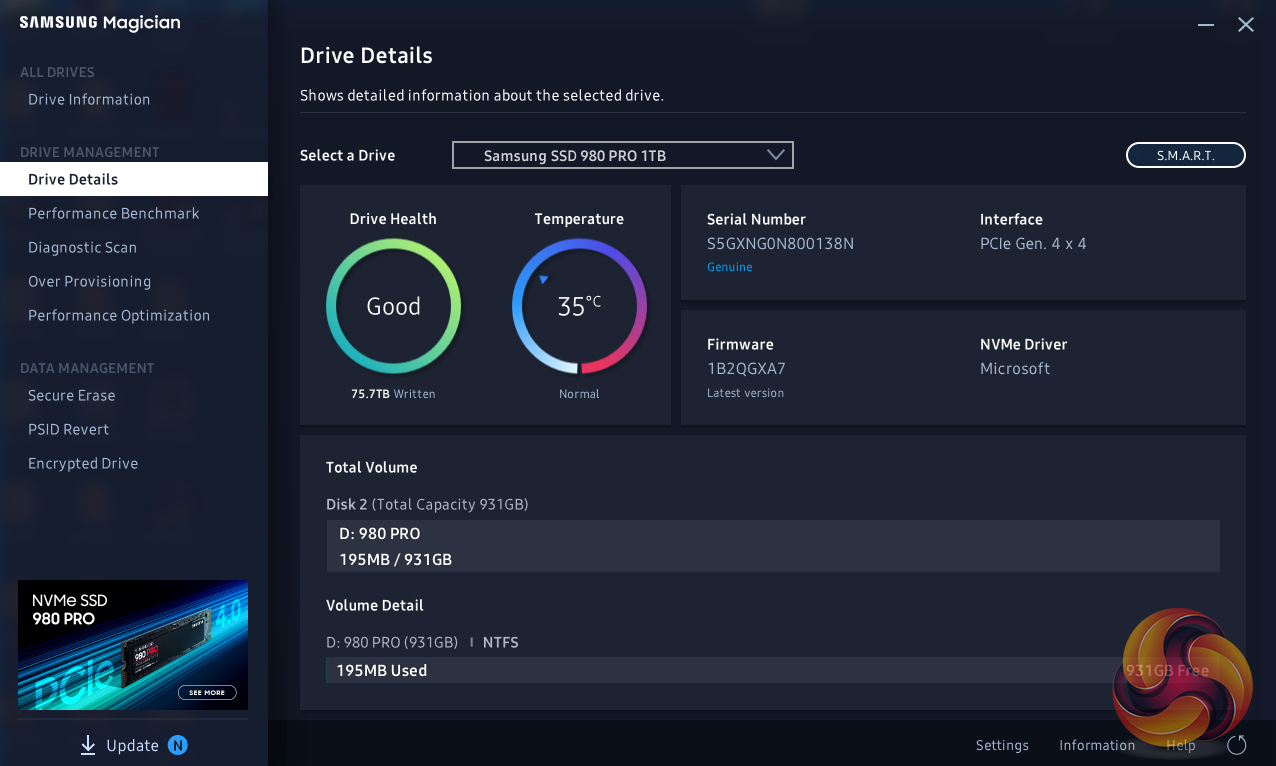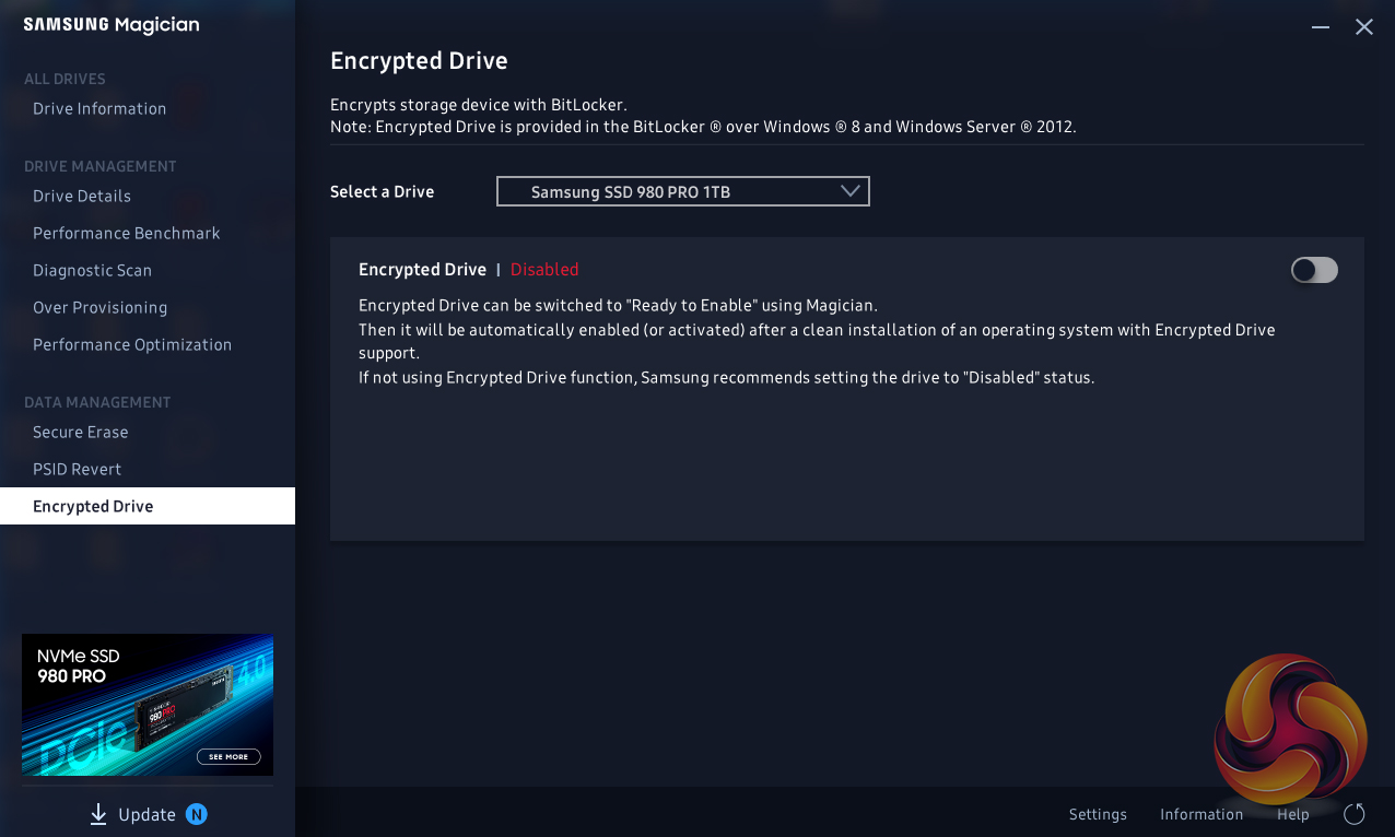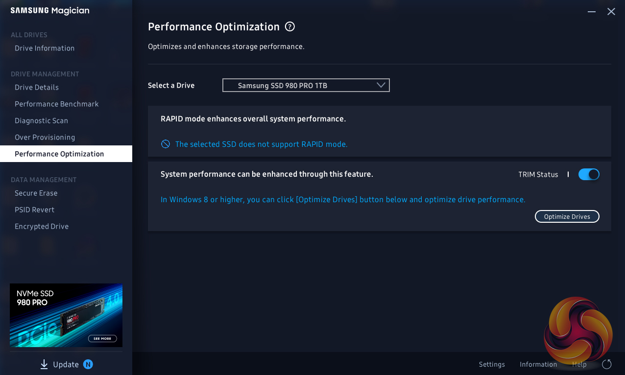 Samsung’s SSD management utility goes by the name of Magician and can be downloaded from Samsung’s website. The latest v6.2 version brings support for the SSD980 PRO.
