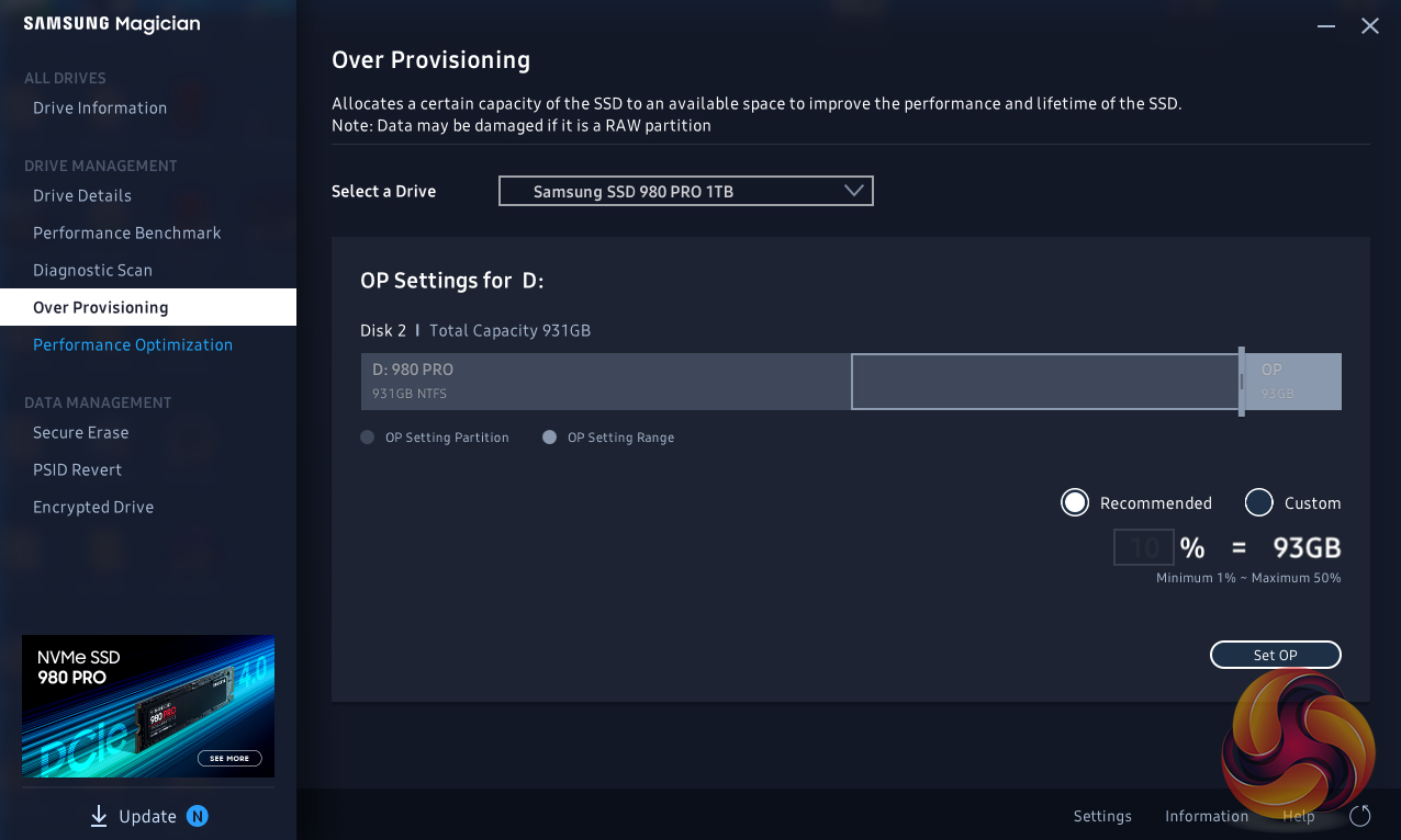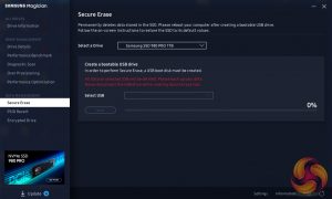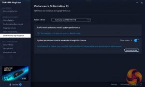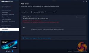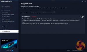 Magician allows you to do most maintenance jobs you may need to do with an SSD; updating firmware, optimise performance, adjust the Over Provisioning, enable data security (the drive supports AES 256-bit full-disk encryption, TCG/Opal V2.0, and Encrypted Drive -IEEE1667 (MS eDrive ) ) and securely erase the drive. Magician also features a built-in benchmark tool.